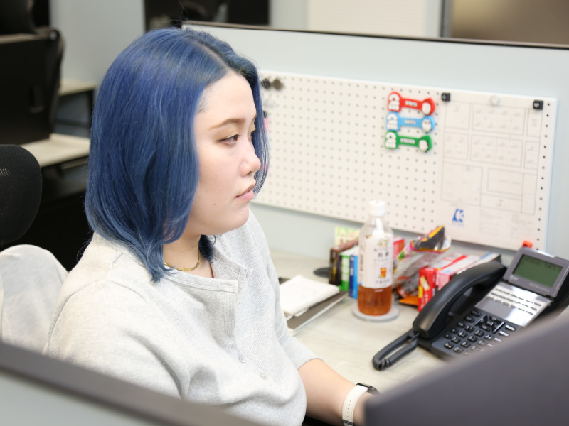 入社の決め手は、自分の希望に合っていたことが1番だと思います。経験したことのない職業をやってみたく、未経験で働けて、見た目が自由な箇所が私にとってうれしい条件で入社を決めた理由になるのかなと思います。写真の通り髪色が自由で、ネイルに関しても好きにさせてもらっています。設計の会社と聞くと厳しいのかなと思うところがありますが、若い社員も多く、上司の方とも仲良くさせていただいていて、自由に働けるいい環境です。