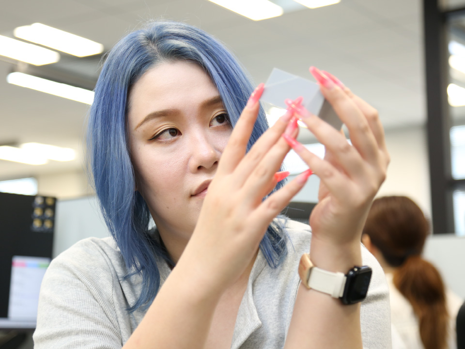 入社の決め手は、自分の希望に合っていたことが1番だと思います。経験したことのない職業をやってみたく、未経験で働けて、見た目が自由な箇所が私にとってうれしい条件で入社を決めた理由になるのかなと思います。写真の通り髪色が自由で、ネイルに関しても好きにさせてもらっています。設計の会社と聞くと厳しいのかなと思うところがありますが、若い社員も多く、上司の方とも仲良くさせていただいていて、自由に働けるいい環境です。